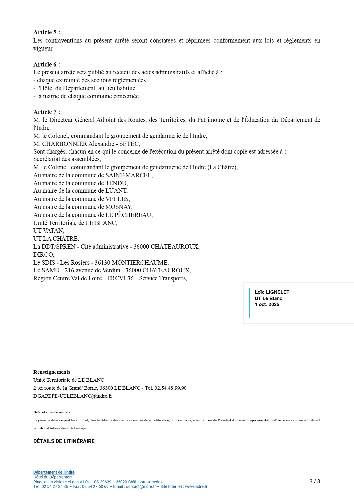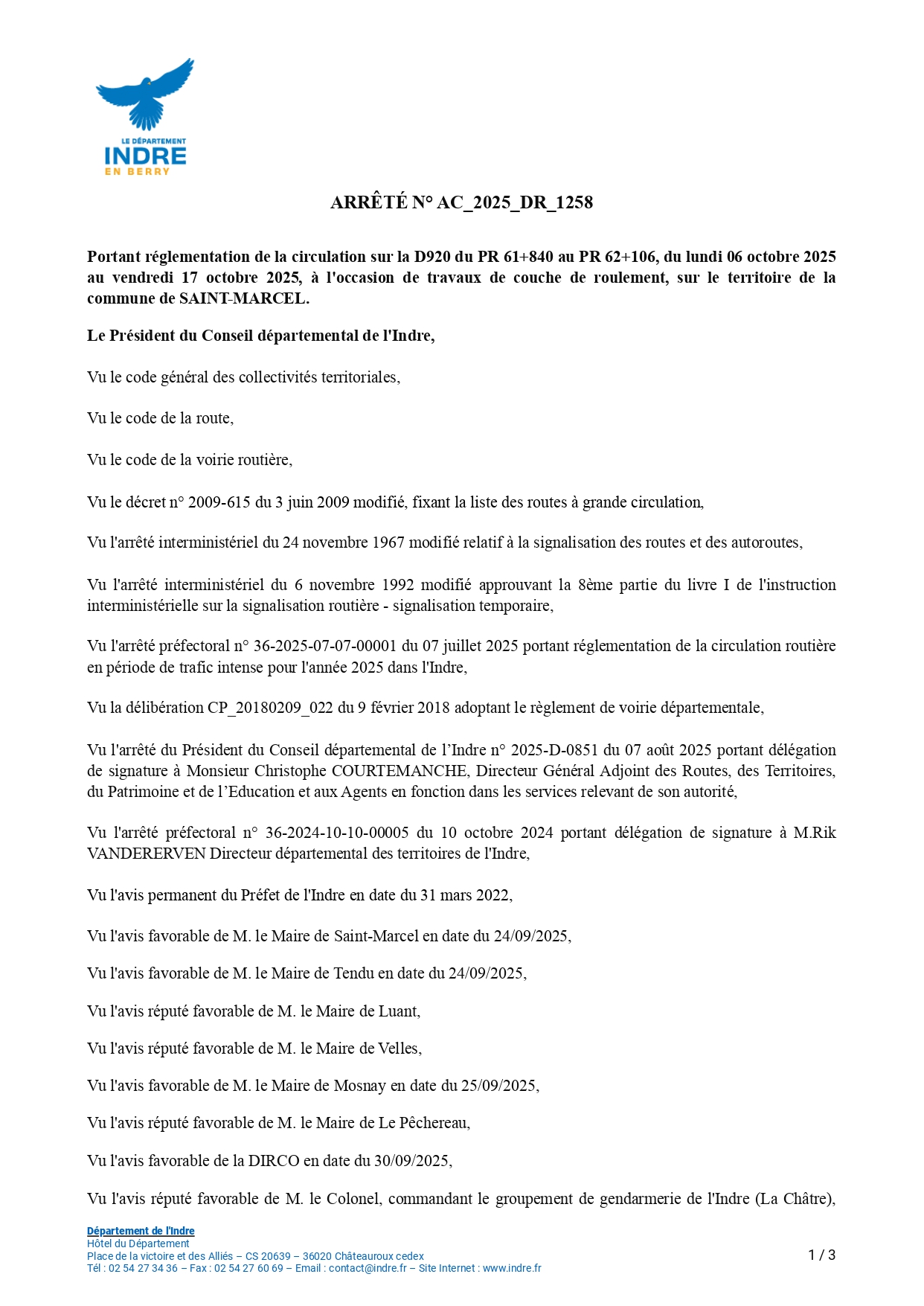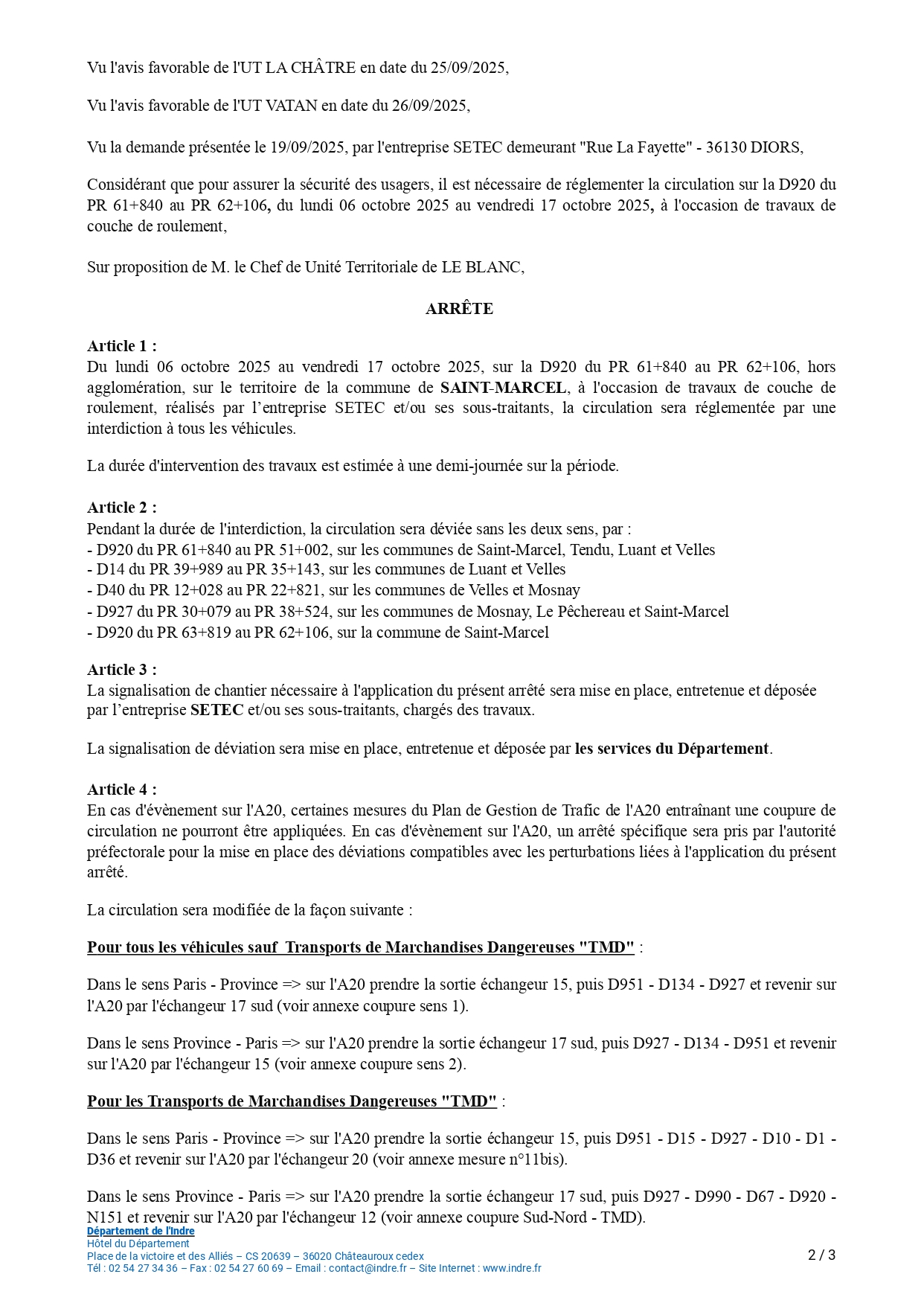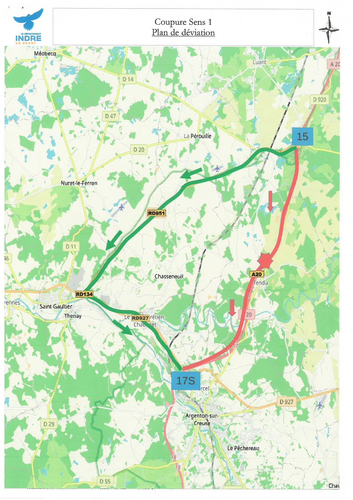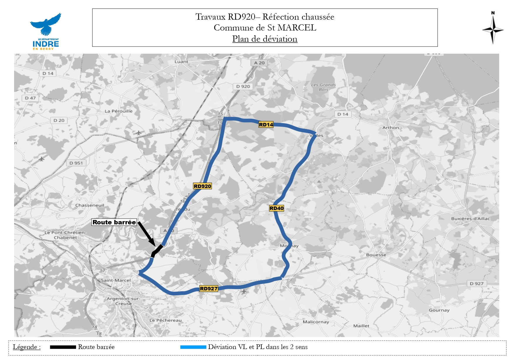 Travaux en direction d’Argenton sur Creuse sur la D920.